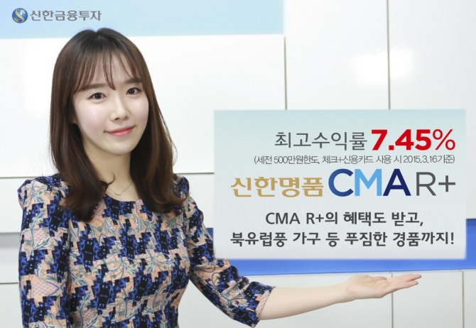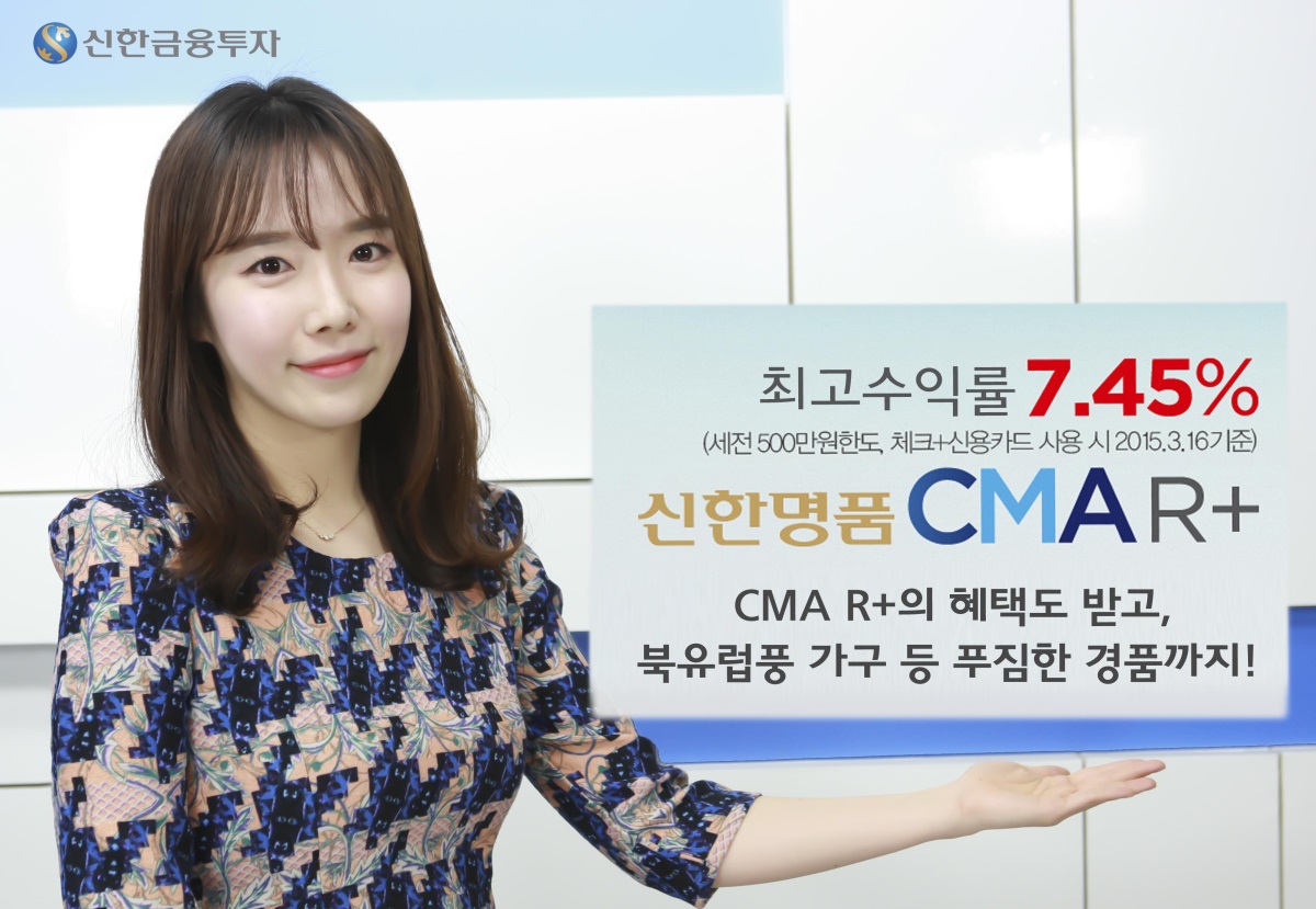 신한금융투자 송용태 마케팅본부장은 “‘CMA R+’ 카드상품은 정기예금금리 1%대 시대에 최고 7.45%의 고금리를 제공하고 소득공제혜택까지 챙길 수 있는 ‘일석이조 상품’”이라며 “앞으로도 신한금융의 네트워크를 활용해 증권과 타 금융업권 간 시너지를 극대화한 복합상품을 지속적으로 선보일 계획”이라고 말했다.