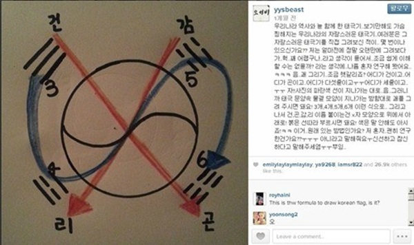 양요섭은 과거 자신의 SNS를 통해 쉽게 태극기를 그릴 수 있는 이미지와 함께 "우리나라 역사와 늘 함께한 태극기. 보기만해도 가슴 찡해지는 우리나라의 자랑스러운 태극기"라며 "여러분은 자랑스러운 태극기를 직접 그려보신 적이 몇 번이나 있으신 가요?"라는 글을 공개했다.