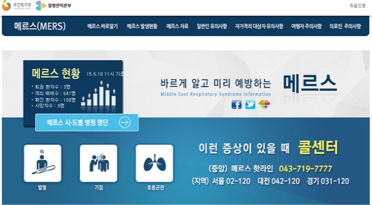 메르스 관련 정보는 홈페이지(www.mers.go.kr) 통해 확인 할 수 있다.