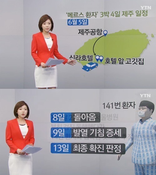 메르스 확진 판정을 받은 제주 관광객은, 확진 판정을 받기 전 가족 등 일행 12명과 함께 3박 4일로 제주도 여행을 다녀왔다.