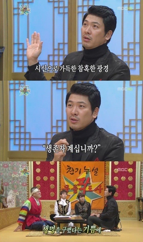김상경은 이어 "구조요원들이 손으로 돌을 날렸다. 시끄러우니까 '전 구조요원 동작 그만'이라고 하면 조용해진다. '생존자 계십니까' 하고 조용하면 다시 작업을 한다. 몇번 하다가 '생존자 계십니까'라고 묻는데 '탁' 소리가 들리더라. 그러니까 그 현장은 난리가 났다"며 "그때 처음에 들어갈 때 공포, 무서운게 하나도 없어졌다. 나도 죽을 수 있다는 생각이 없어진다. 빨리 한명이라도 더 구해야겠다는 생각이 든다"고 털어놨다.