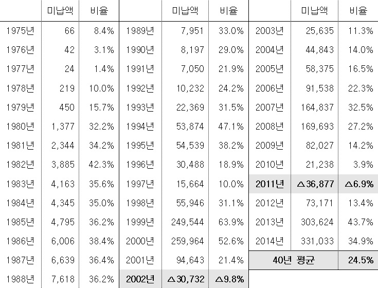 미납액은 사학연금 첫 해부터 있었다. 정부는 1975년 6600만원(8.4%)을 납입하지 않으면서 돌려막기가 시작됐다. 국가부담금이 투입되면 미납액을 먼저 갚고 남은 돈으로 부담금을 내는 식이다.