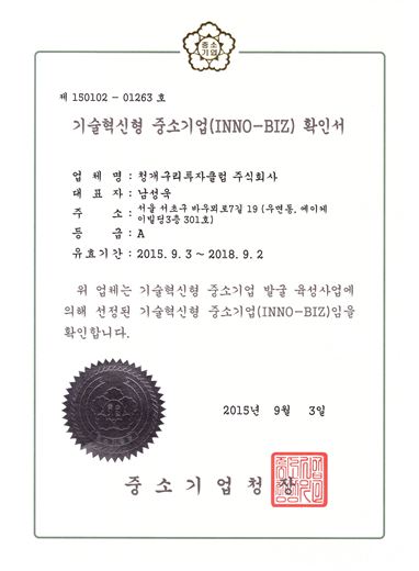 청개구리 투자클럽은 기술혁신능력, 기술 사업화 능력, 기술혁신경영능력, 기술혁신성과 온라인자가진단, 기술보증기금 현장평가 등 다양한 평가항목에서 우수한 성적을 거둬 A등급을 획득했으며, 금융 및 기술개발 등 다양한 혜택을 발판으로 기업경쟁력을 더욱 강화할 수 있다는 기대를 받았다.