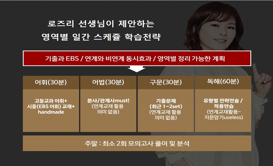 앞서 말한 것처럼 직접 연계율이 떨어지는 시점에 EBS 연계 교재 지문을 단순 암기하는 것은 좋은 방법이 아니므로 연계든 비연계든 풀어 낼 수 있는 필승법을 체화하고, 지문 흐름을 보는 글의 논리에 대한 지식 함양이 겸비돼야 한다.