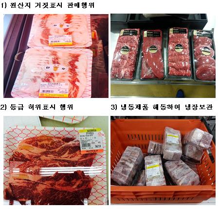 냉동 축산물을 해동하고서 냉장 축산물로 판매하거나 유통기한이 지난 제품을 판매한 사례 등도 적발됐다.