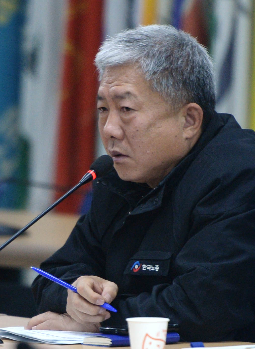 이미지 확대보기한노총 김동만 위원장은 19일 서울 여의도 노총 회관에서 ‘노동시장 구조개악 저지 투쟁 선포’ 기자회견을 열고 9·15 노사정 대타협의 파탄을 선언한 뒤 노사정위에 참여하지 않겠다고 밝혔다.