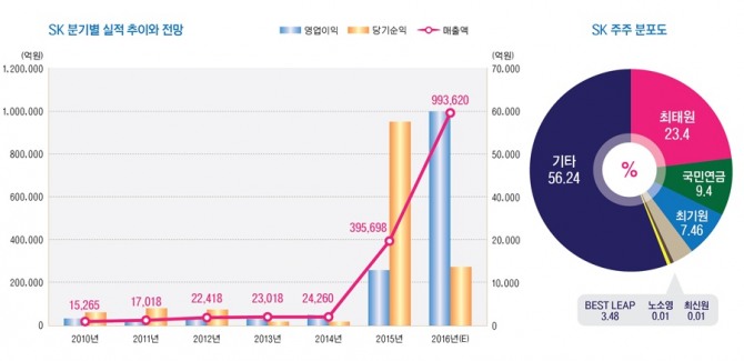 정대로 연구원은 올해 SK의 매출액이 99조3620억원, 영업이익 5조8420억원, 당기순이익 1조5130원이 될 것으로 전망하고 있다.