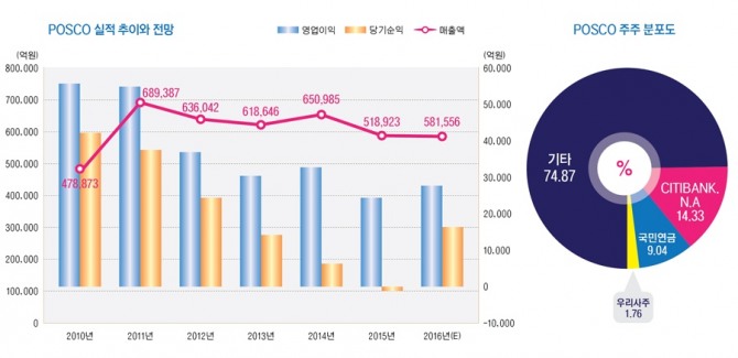 포스코는 국민연금이 지난해 말 현재 지분 9.04%인 788만5065주를 갖고 있는 최대주주다.