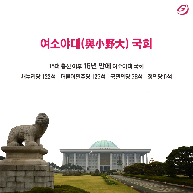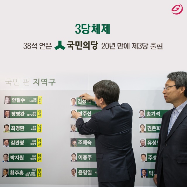 더불어민주당에서 123석, 국민의당에서 38석, 정의당에서 6석을 확보하고 여당인 새누리당은 122석에 그쳐 ‘여소야대’ 국회 정국이 형성됐습니다. 이는 16대 총선 이후 16년 만입니다.
