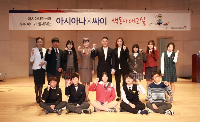 이날 싸이와 함께 강사로 참여한 아시아나항공 캐빈승무원 임지원 부사무장은 직업강연을 통해 승무원 직업 소개 및 진로탐색 과정을 전달해 승무원을 꿈꾸는 학생들에게 생생한 정보를 제공했다.
