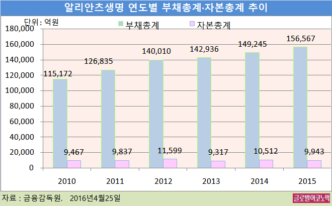 알리안츠생명 한국법인의 부채는 늘고만 있지만 손익계산서에 나타나는 실적은 그다지 좋지 못하다.