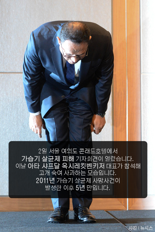 피해자 대표 최승운씨는 “검찰 수사를 진행하고 있는 시점에서 옥시의 이러한 보여주기식 사과를 강력히 거부한다”며 “수사 면피용 사과는 받아들일 수 없다”고 밝혔습니다.