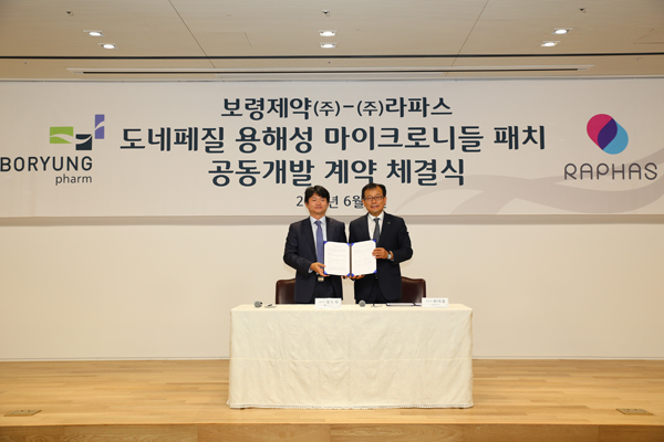이미지 확대보기양사는 이번 계약을 시작으로 ‘도네페질 마이크로니들 경피제제’ 공동 개발에 나선다. 보령제약은 비임상 시험 및 임상 시험을 담당하고 전세계 판권을 보유하게 되며 라파스는 ‘용해성 마이크로니들’ 제조 원천 기술을 활용해 제조와 공급을 담당하게 된다.