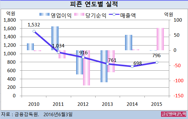 2011년 당기순이익은 -27억원, 2012년-116억원, 2013년 -72억원을 기록했고 2014년에는 4억원, 그리고 2015년에는 74억원의 흑자를 기록했다.