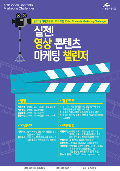 이번 대학생 마케터 15기는 '실전! 영상 콘텐츠 마케팅 챌린저'를 주제로 기획 파트와 영상 파트 두 분야로 나누어 총 16명을 선발한다.