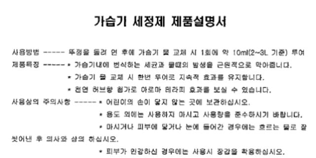 해당 가습기 살균제 대부분은 ‘어린이의 손에 닿지 않는 곳에 보관할 것’ ‘피부에 닿거나 눈에 들어가거나 마셨을 경우 즉시 의사에게 문의할 것’ ‘피부가 민감하면 장갑을 착용하여 사용할 것’ 등 마치 락스와 같은 화학물질과 유사한 경고문구를 주의사항으로 삽입돼 있다.
