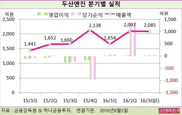 박 연구원은 두산엔진의 3분기 연결기준 매출액이 2085억원, 영업이익 25억원, 당기순이익 35억원을 기록할 것으로 전망하고 있다.