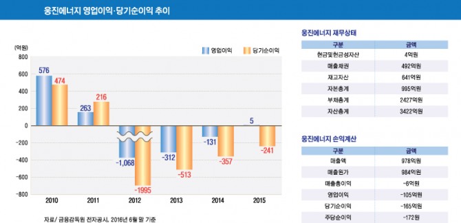 웅진에너지는 태양전지 핵심소재인 잉곳과 웨이퍼를 생산하는 웅진그룹의 자회사인데 태양광시장이 악화되며 수년 동안 적자를 내왔다.