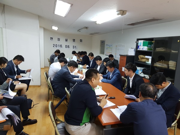 이날 현설에는 △대림산업 △한신공영 △SK건설 △KCC건설 △고려개발 △GS건설 △두산건설 △현대건설 △한진중공업 △대우건설 △호반건설 △대방건설 △현대산업개발(접수순) 등 총 13개사가 참여했다.