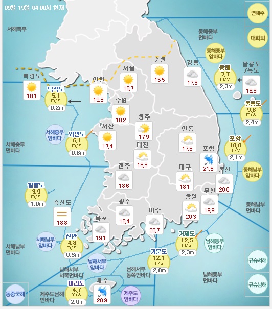 기상정보 : 2016년 09월 19일 04시 15분 발표