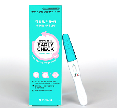 이로 인해 생리예정일 약 4~5일 이전 임신 여부를 빠르게 확인 할 수 있고 99% 이상의 정확도를 보인다고 동아제약 측은 설명했다.