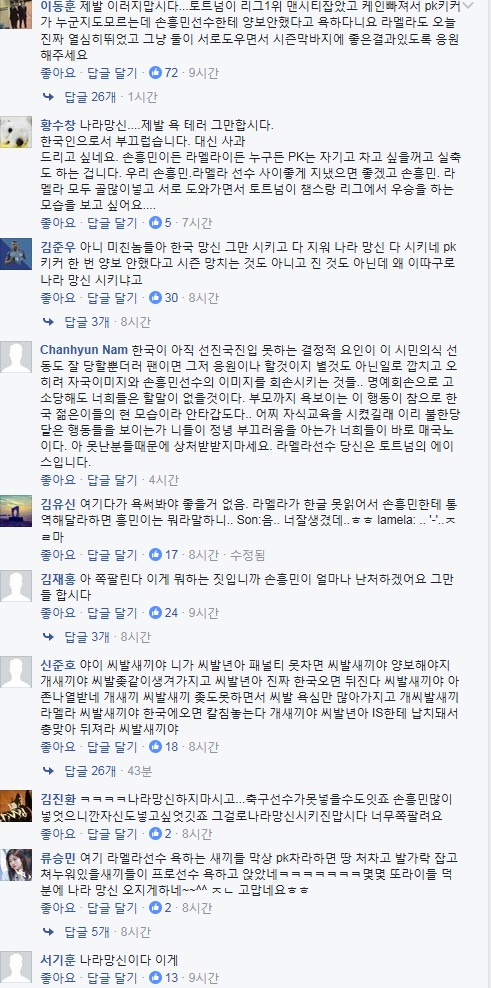 이 사이트에는 토트넘 맨시티 전에서 라멜라가 손흥민의 패널티킥 PK 찰기회를 가로챘다고 욕설 도배가 이어졌다.