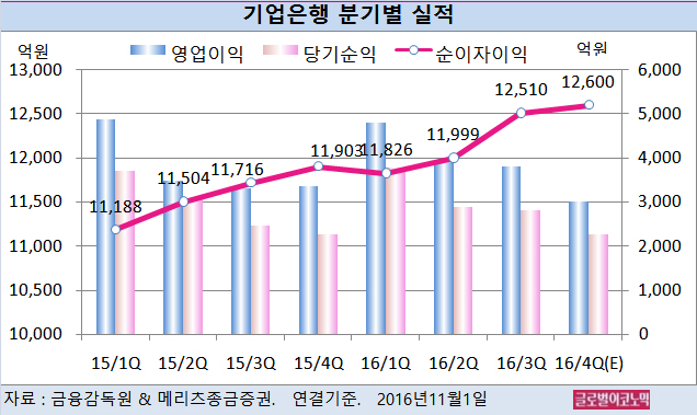 메리츠종금증권 은경완 연구원은 기업은행의 3분기 지배주주 순이익 2810억원은 추정치와 시장 컨센서스에 부합했다고 평했다.