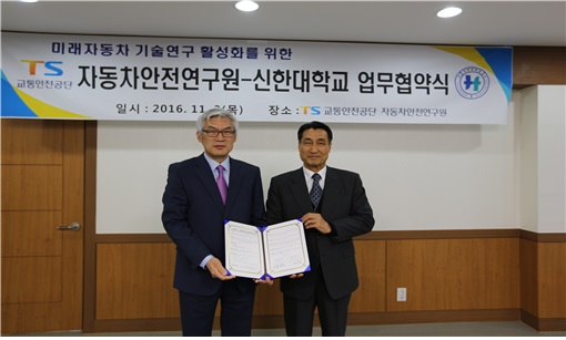 이날 협약식에는 교통안전공단 자동차안전연구원에서는 권해붕원장과 각 실장이 배석했으며, 신한대는 유보선 부총장, 장형성 교무처장, 자동차공학과 교수 등이 참석했다.