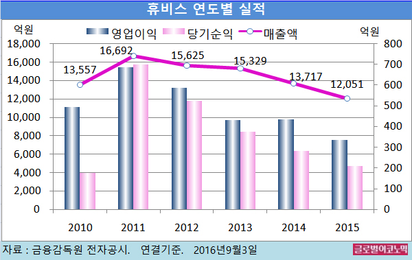 휴비스의 주가는 4일 종가 7600원으로 지난해 10월 10일 고점 9190원에 비해 17.3% 하락한 수준에서 거래되고 있다.