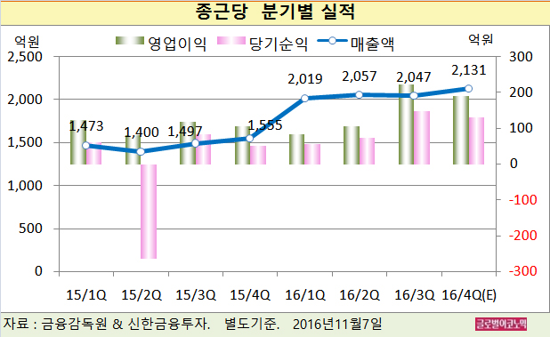 신한금융투자 배기달 연구원은 “종근당의 3분기 매출액은 시장 예상치와 부합했다”면서 “3분기 실적은 놀라운 수익성을 보였다”고 평가했다.
