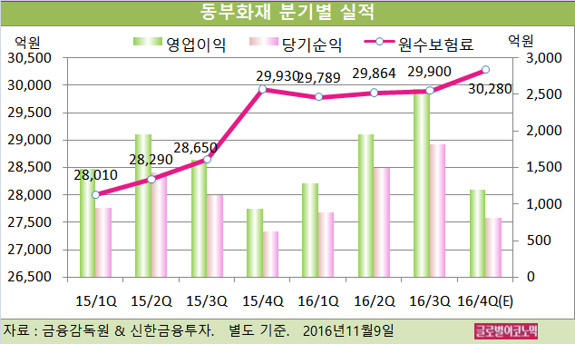 손 연구원은 동부화재의 4분기 별도기준 원수보험료가 3조280억원(전년동기비 +1.2%), 영업이익 1190억원(전년동기비 +26.6%), 당기순이익 808억원(전년동기비 +27.2%)을 기록할 것으로 내다보고 있다.