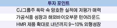 이 연구원은 “가공식품부문에서 경쟁사보다 높은 성장률을 보였던 이유는 제품력과 마케팅, 영업에서의 경쟁력 때문”이라며 “국내 식품시장은 가정식사 HMR가 고성장하는 구간에 접어들었기 때문에 강점이 앞으로도 십분 발휘될 것”이라고 판단했다.