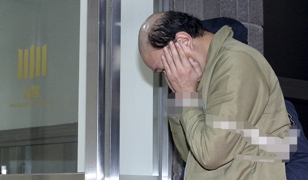 양손으로 얼굴을 감싼 차씨는 서울구치소에서 제공한 수의를 입은 것은 물론 착용하고 있던 가발까지 벗은 대머리 모습이다.