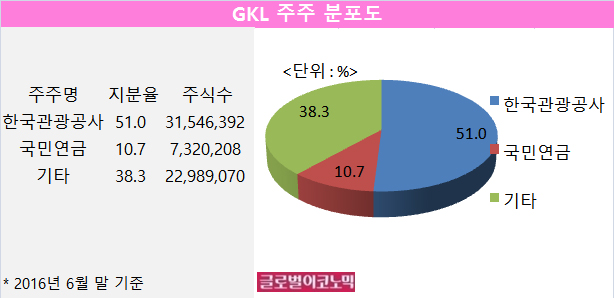 GKL이 최순실씨나 고영태의 압박에 굴복할 수 밖에 없었던 데에는 GKL의 지분 51%(3154만6392주)를 갖고 있는 최대주주가 한국관광공사이기 때문이다.