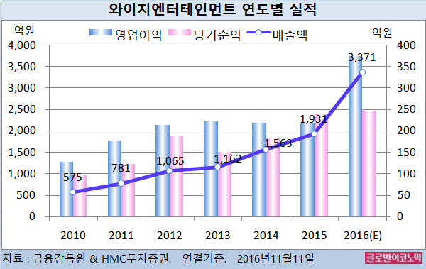 유 연구원은 와이지엔터테인먼트의 올해 연결기준 매출액이 3371억원(전년비 +74.6%), 영업이익 375억원(전년비 +72.0%), 당기순이익 248억원(전년비 +3.3%)에 이를 것으로 전망하고 있다.