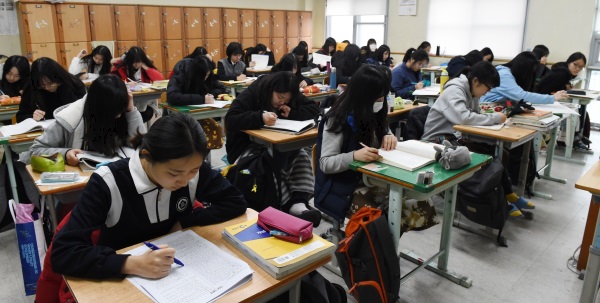 이미지 확대보기 2017년 대학수학능력시험을 일주일 앞둔 10일 오후 대전 서구 둔원고등학교에서 학생들이 막바지 시험준비를 하고 있다. /뉴시스 교육부는 14일 오전 7시30분부터 17일 실시되는 2017학년도 대학수학능력시험 문제지와 답안지를 울산 시험지구를 시작으로 전국 85개 시험지구에 2017학년도 수능 문제지와 답안지를 배부한다고 밝혔다.