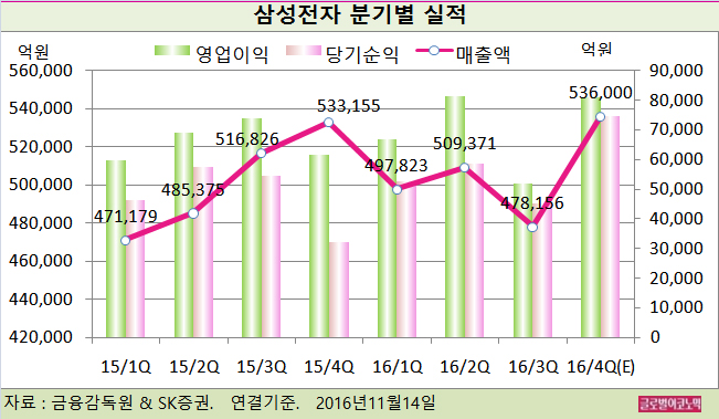 SK증권 김영우 연구원은 삼성전자의 올 4분기 IM(스마트폰, 네트워크시스템, 컴퓨터) 사업부는 여전히 영업이익 2조2000억원 수준으로 부진하나 DRAM 업황 개선 지속 및 3D Nand의 수익성에 기인한 반도체 부문의 실적이 크게 개선될 것으로 진단했다.