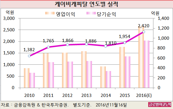 윤 연구원은 KB캐피탈이 취급자산 증가에 힘입어 2017년도 순이익이 전년대비 5.5% 증가한 1005억원에 이를 것으로 예상하고 있다.