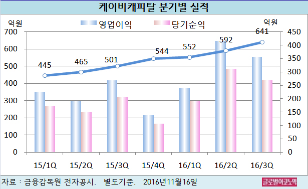 KB캐피탈은 올해 3분기 별도기준 영업이익 354억원(전년동기비 +31.6%), 당기순이익 270억원(전년동기비 +31.7%)을 기록했다.