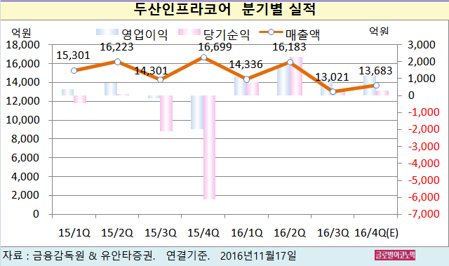이 연구원은 두산인프라코어의 올 4분기 연결기준 매출액이 1조3683억원(전년동기비 -18.1%), 영업이익 1175억원(흑자전환), 당기순이익 295억원(흑자전환)을 기록할 것으로 내다보고 있다.