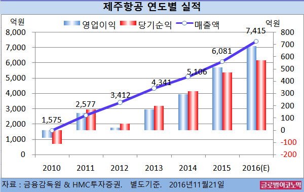 제주항공은 올 4분기 항공기 1대를 도입하고 2017년말 30대까지 늘릴 계획으로 규모의 경제효과 극대화가 기대된다.