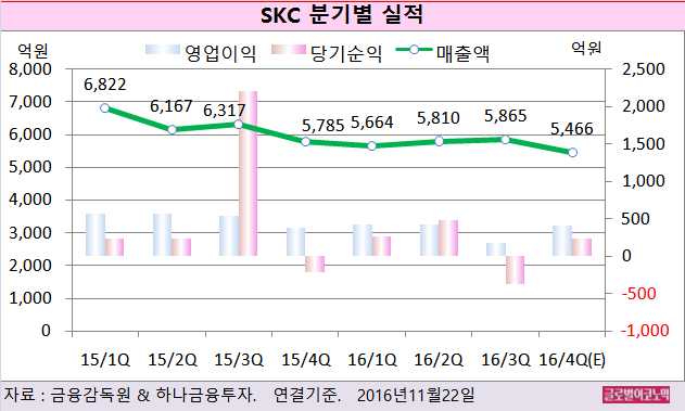 하나금융투자 윤재성 연구원은 SKC의 3분기 영업이익이 시장 예상치 252억원을 약 27% 하회하는 부진한 실적을 시현했다고 평했다.