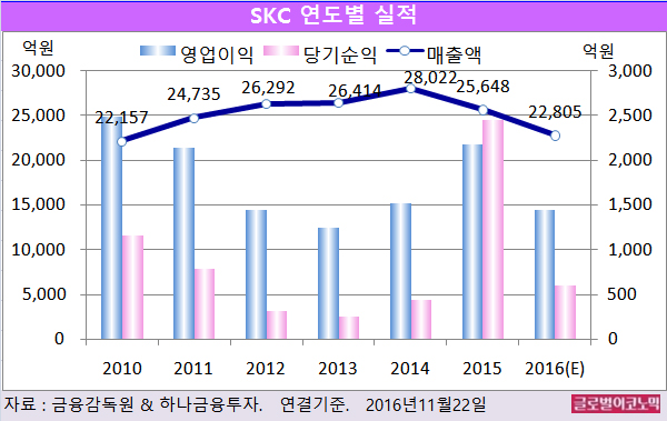 SKC의 실적이 부진했던 것은 인력 구조 효율화와 관련한 비용 231억원이 발생하면서 필름부문에서 197억원의 큰 폭 적자를 기록했기 때문이다.