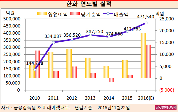 미래에셋대우 정대로 연구원은 “한화의 3분기 실적이 시장 컨센서스를 상회했다”면서 “양호한 실적의 배경은 한화생명, 한화건설 등 주요 자회사 실적 개선에 기인한다”고 분석했다.
