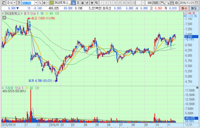 SK네트웍스의 주가는 21일 종가 6900원으로 올해 1월 21일의 저점 4780원에 비해 44.4% 오른 수준에서 거래되고 있다.