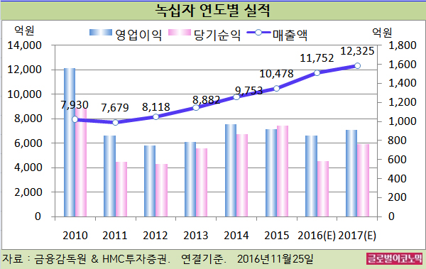 강 연구원은 또 2017년에는 연결기준 매출액 1조2325억원(전년비 +4.9%), 영업이익 914억원 (전년비 +7.5%), 당기순이익 764억원(전년비 +31.0%)에 이를 것으로 전망하고 있다.