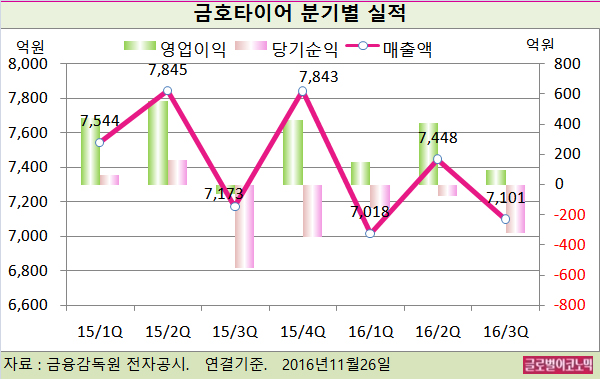 신한금융투자 정용진 연구원은 “금호타이어의 3분기 영업이익이 시장 기대치인 275억원이 비해 크게 부진한 실적”이라며 “매각을 앞두고 단기 실적은 불안정하다”고 평가했다.