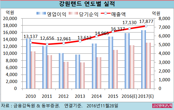 권 연구원은 강원랜드의 낮아진 성장률이 2018년에 회복될 것으로 기대하고 있다.