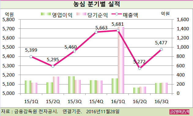 농심은 올해 3분기 연결기준 매출액이 5477억원(전년동기비 +0.3%), 영업이익 228억원(전년동기비 -39.2%), 당기순이익 231억원(전년동기비 -20.9%)을 기록했다. 3분기 OPM(영업이익률)은 4.2% 수준이다.