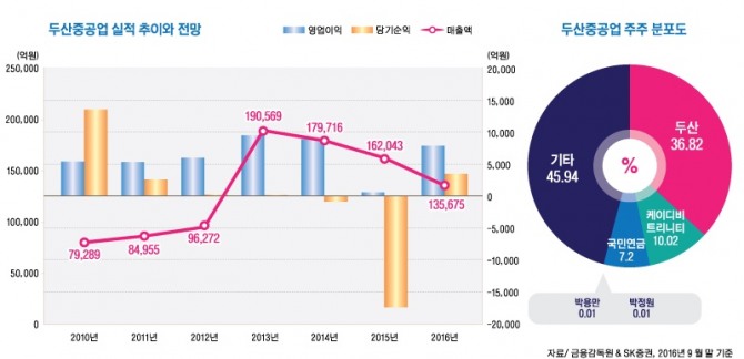 두산건설은 연 목표 2조원 수주 초과달성이 전망되고 있고 두산엔진은 중국시장 점유율을 최근 5년 내 최고 수준인 28%로 끌어올리며 흑자 기조를 이어가고 있다.